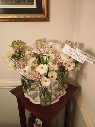 Each month, the club delivers miniature floral arrangements for residents in the Wiley healthcare unit who are celebrating birthdays. The arrangements, which come with Happy Birthday greetings attached, are designed to fit on a bedside table. These cheerful mini arrangements are sure to bring a smile to Wiley residents all year long!
